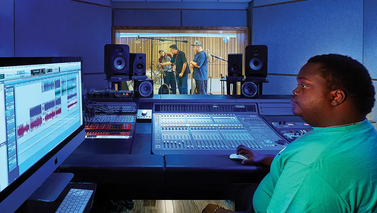 In audio courses, you focus on making and mixing sound, mastering audio, improving sound quality, editing, and using microphones for both live and studio recordings.