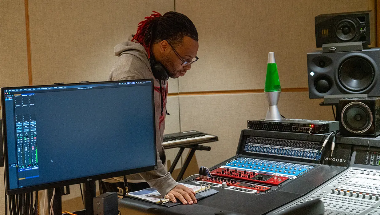 In audio courses, you focus on making and mixing sound, mastering audio, improving sound quality, editing, and using microphones for both live and studio recordings.