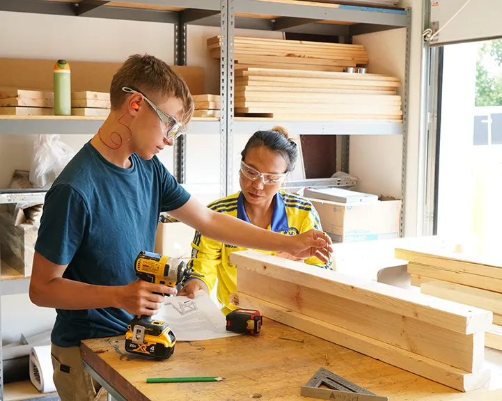 • Get hands-on training to build real-world skills in construction or manufacturing.