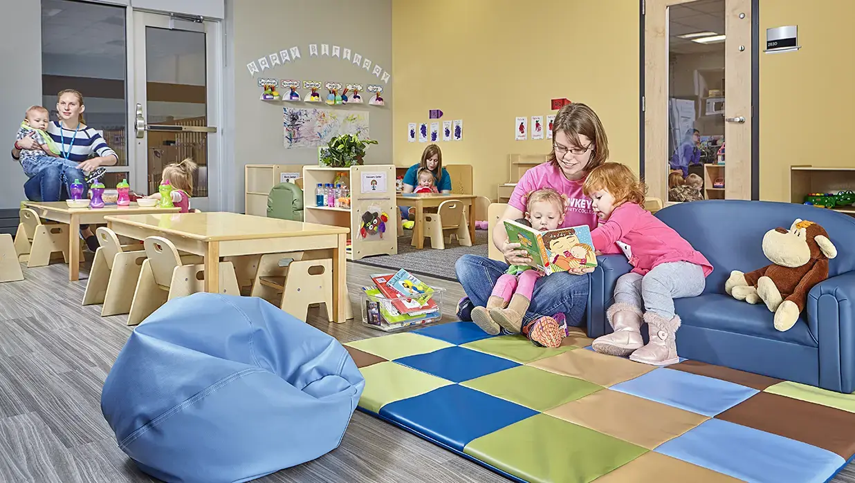 The Radiant Rainbows classroom serves young toddlers ages 12–24 months. Teachers plan a variety of individual and group activities to stimulate your child socially, intellectually, and creatively. The Radiant Rainbow classroom curriculum, environment, and experiences are based on the children’s developmental needs and interests.